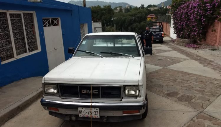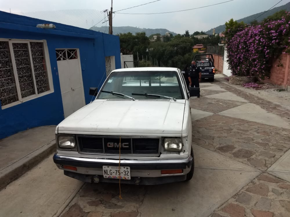 Afuera del inmueble se encontró una camioneta GMC de color blanco, con placas de circulación NLG 7532 del Estado de MÉXICO, que tenía autopartes en la batea.