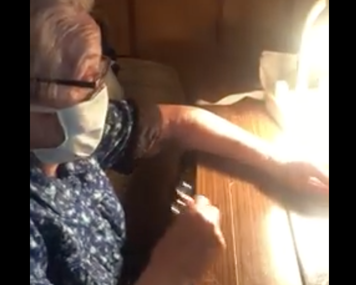 Un video se hizo viral, se trata de una abuelita de 88 años que sufre parkinson y sin importar sus condiciones, su corazón y solidaridad es más fuerte y decidió coser 50 cubrebocas para donar.