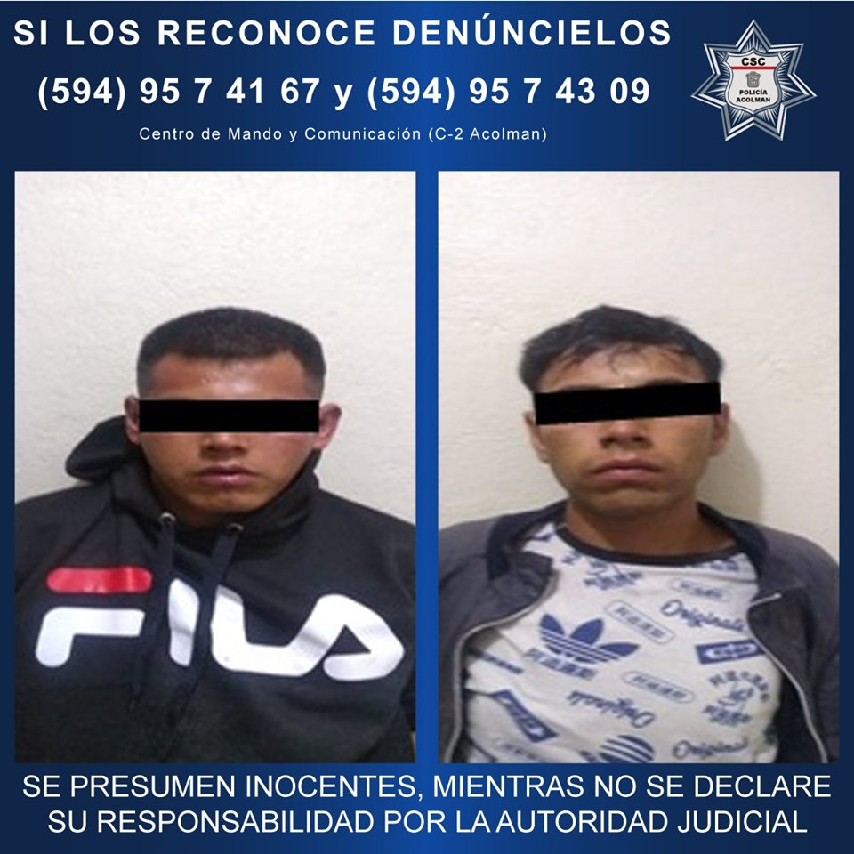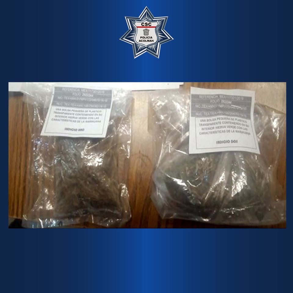 Elementos de la policía municipal de Acolman detuvieron a dos sujetos por delitos contra la salud.