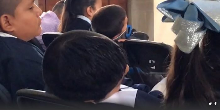 Los pequeños, de entre seis y siete años, se acurrucaron en las sillas y ocuparon el respaldo para recargar su cabeza, mientras el presidente respondía las preguntas de los reporteros.
