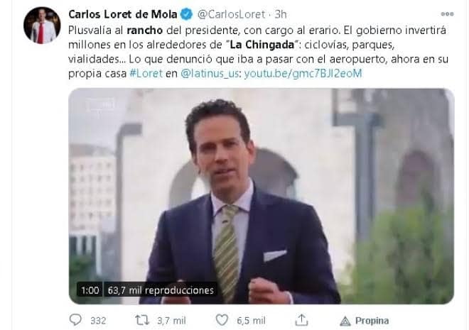 AMLO reta a Loret de Mola; “Te cambio la plusvalía que va a tener mi terreno por tu departamento en EEUU”