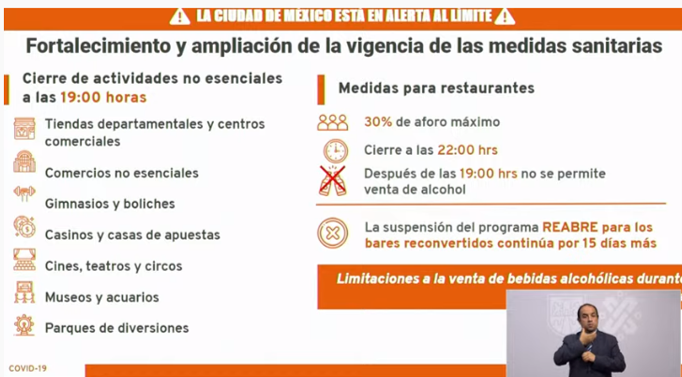 Pese a que hubo un aumento en el número de hospitalizaciones, se mantendrán las mismas medidas sanitarias, como el cierre de actividades no esenciales a las 7 de la noche y permitir a restaurantes un aforo máximo del 30 por ciento.