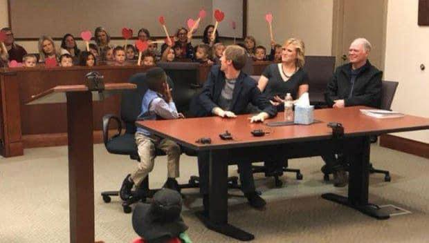 Este pequeño se llama Michael e invitó a sus amigos a su audiencia de adopción