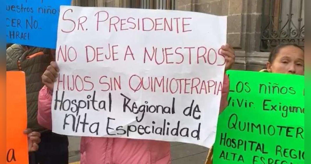 Padres de familia de niños con cáncer protestaron en frente al Palacio Nacional, para exigir el abasto de medicamento y quimioterapias en el Hospital Regional de Alta Especialidad de Ixtapaluca.