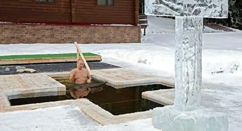 La celebración ha coincidido este año con una brusca bajada de temperatura, que ha alcanzado valores mínimos de 25 grados bajo cero, y en la región de Moscú, donde presuntamente se bañó Putin, el termómetro marcó 18 grados bajo cero.
