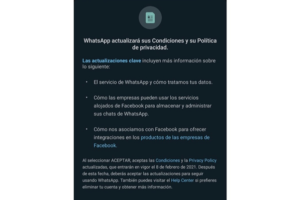 Millones de personas recibieron un mensaje de Whatsapp notificando sobre cambios en sus términos y condiciones de privacidad. Los cambios son obligatorios si el usuario quiere seguir usando la app. Esto entrará en vigor el 8 de febrero. Pero ¿qué significa? ¿qué cambia con nuestra información?