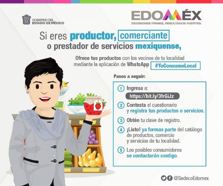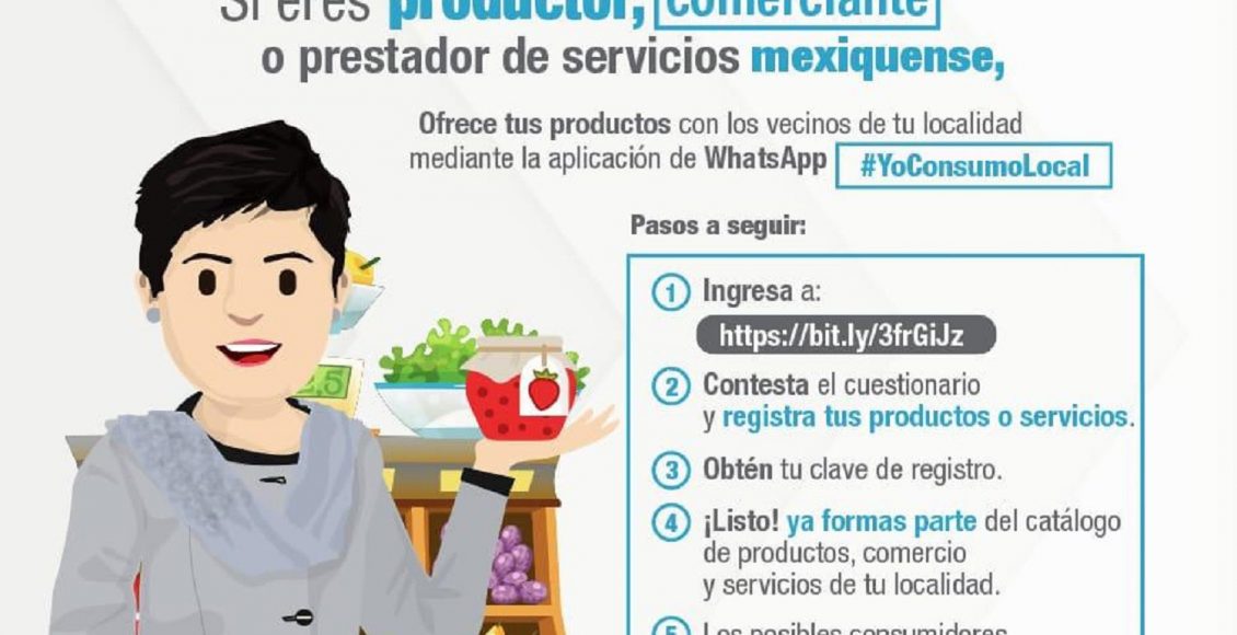 Pedrozo, indicó que los interesados en ofrecer sus productos con los vecinos mediante WhatsApp #YoConsumoLocal, pueden ingresar a la dirección, https://bit.ly/3frGiJz, para contestar un cuestionario, registrar el producto o servicio que ofrecen, sin costo alguno, obtener una clave para formar parte del catálogo y, en menos de 24 horas, empezar a funcionar en su localidad.
