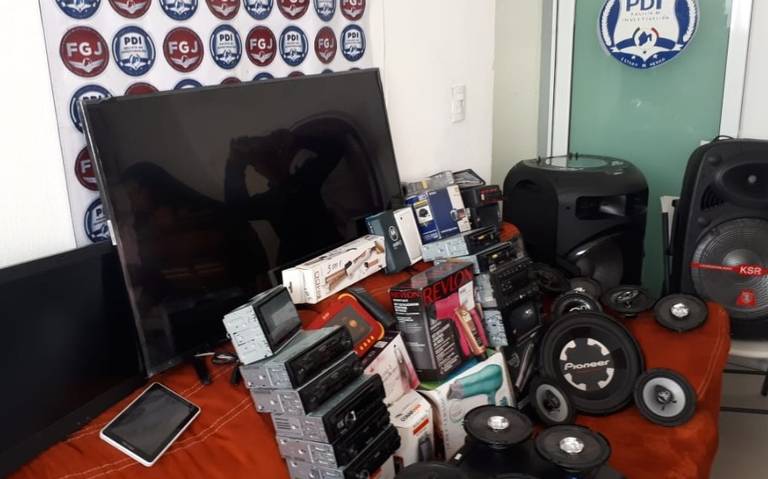Al interior del domicilio las autoridades hallaron 68 artículos, entre ellos pantallas, bocinas, autoestéreos, cámaras digitales, entre otros.