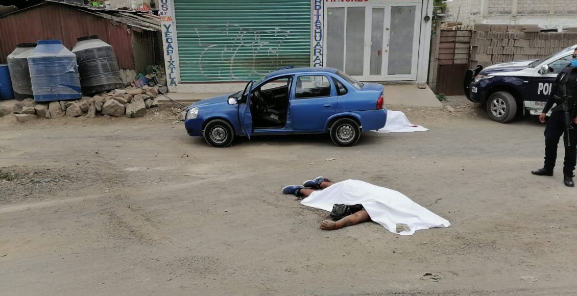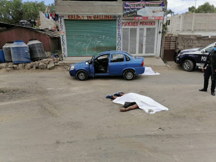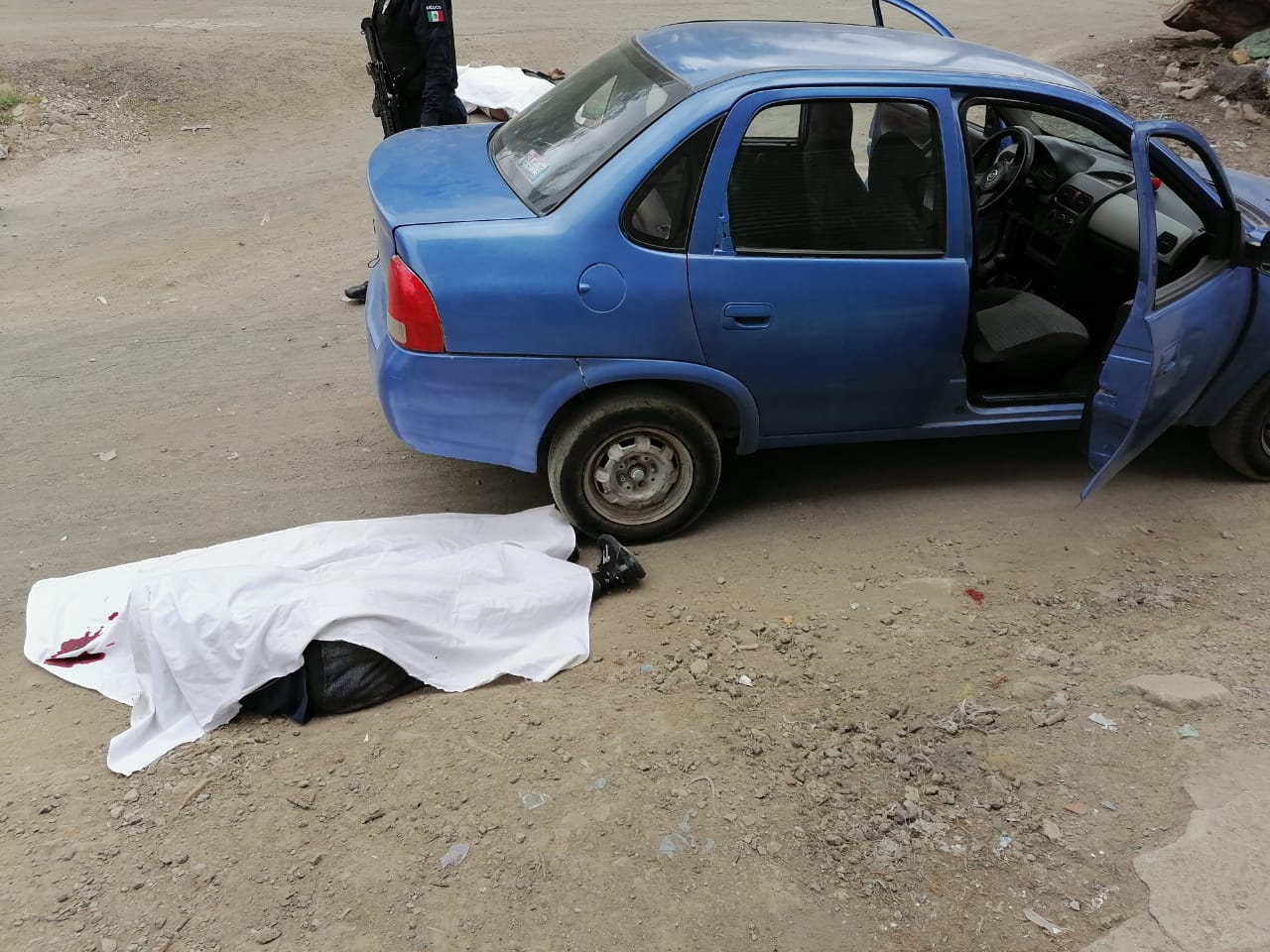 El primero se halló a un costado de un auto de la marca Chevrolet tipo Chevy color azul, en tanto que el otro cuerpo se encontraba a escasos metros de la unidad.