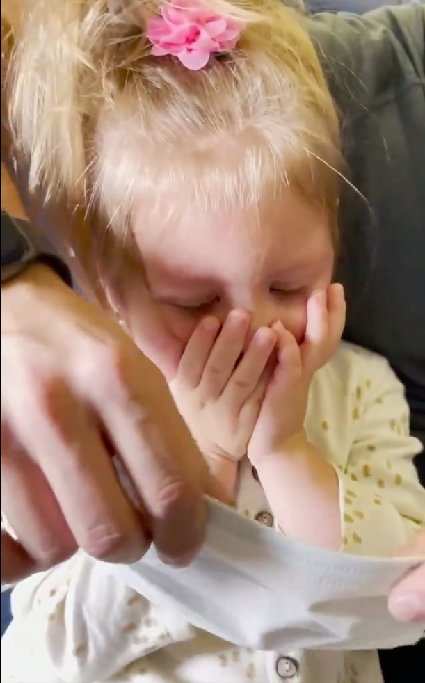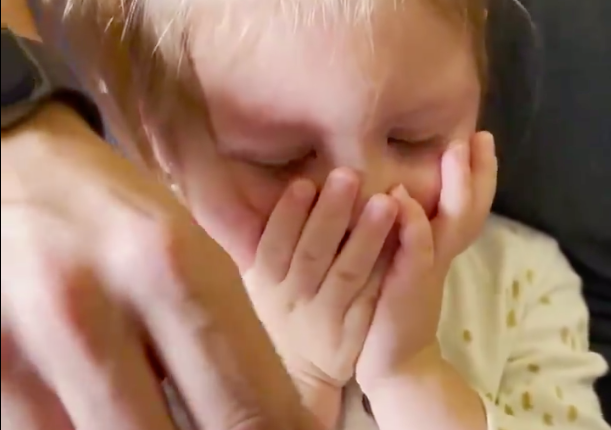 En el video que compartió la señora Orban se puede ver cómo la pareja intenta ponerle el cubrebocas a su hija, pero ésta llora y rechaza la mascarilla.