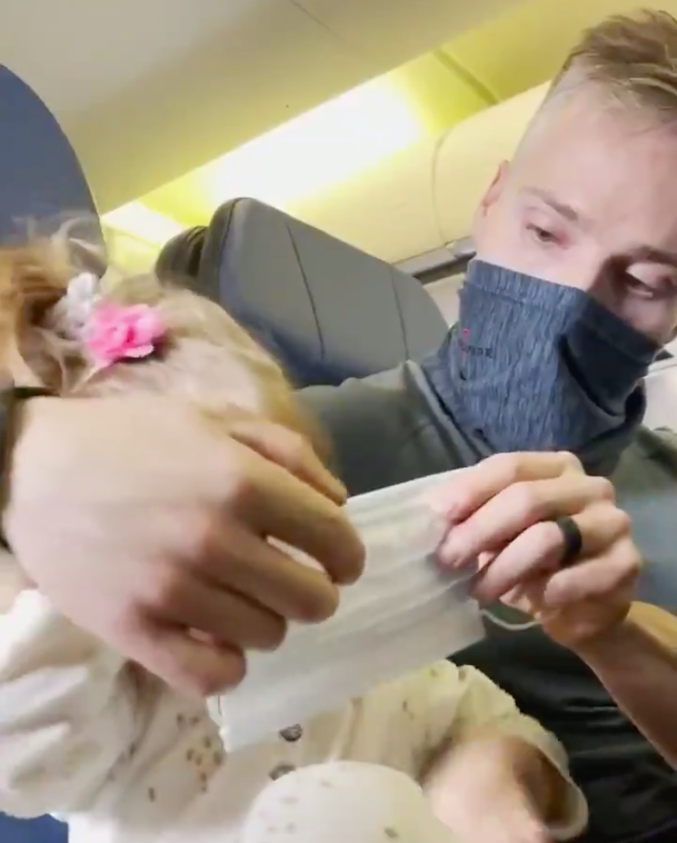 “Hoy nos pidieron que dejáramos el avión después de que salió, y tuvieron que traerlo de regreso a la puerta de abordaje, porque nuestra hija de 2 años no estaba ‘cumpliendo’ al cubrirse con las mascarilla”, escribió la madre en Instagram.