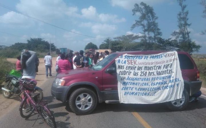 Padres de familia de un plantel educativo en Ciudad Isla, Veracruz, realizaron un bloqueo en la carretera federal 145, lo que ha provocado una larga fila de autos y molestia entre los automovilistas que se quedaron en el camino.