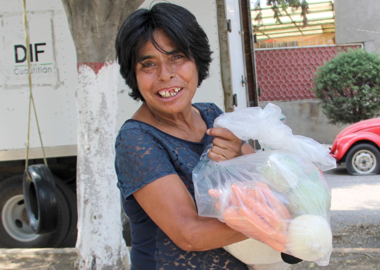 En San Blas una vecina dijo que la ser un apersona de bajos recursos básicos, pagando renta y con empleo temporal, la entrega de verduras le permitirá elaborar una comida para las dos personas que viven en su casa, pero sobre todo que no tuvieron que ir a recibirla a un lugar alejado por que no tenían para el pasaje.