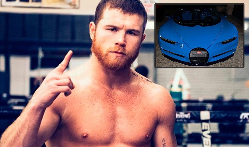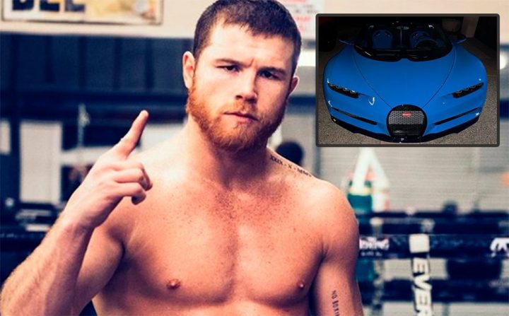 Canelo adquirió un Bugatti Chiron color azul, el cual tiene un costo de 65 millones, 38 mil 208 pesos, alcanza hasta los 420 kilómetros por hora, una potencia de mil 500 caballos de fuerza y cuenta con 16 cilindros.