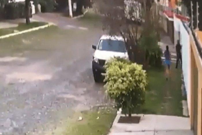 Los hechos se registraron en Zapopan, Jalisco, y en el clip se observa cómo el hombre se estaciona frente a una casa y se baja de su camioneta color blanco.