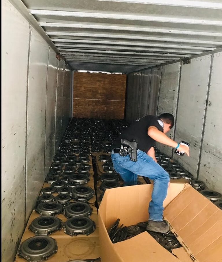 - Tractocamión marca Kenworth, acoplado a una caja seca marca Monon, reportado como robado el 7 septiembre del 2017. Dentro de este camión fueron encontradas 40 toneladas de autopartes clutch de la marca LUK.