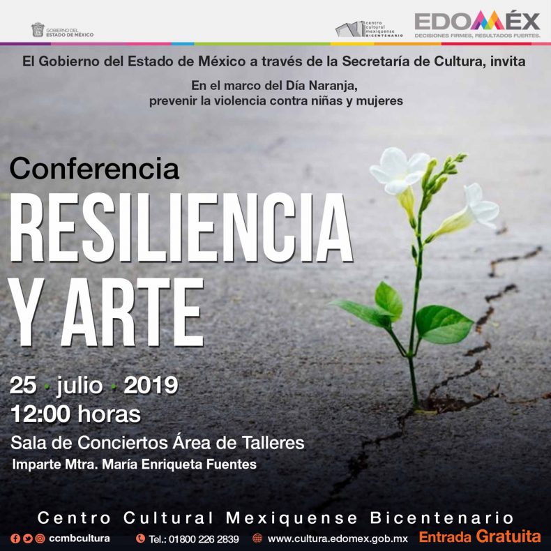 A las 12:00 horas, en la Sala de Conciertos de Talleres, se impartirá la conferencia “Resiliencia y arte”, por la maestra María Enriqueta Fuentes, la cual es una oportunidad de conocer más sobre la capacidad que tiene una persona para recuperarse frente a la adversidad y cuyo objetivo que es que sirva a las y los asistentes en su desarrollo personal.En el Auditorio “Dr. Miguel León Portilla”, a las 17:00 horas, el Centro de Atención Psicológica Conductual Contextual del Estado de México, con la psicóloga Dulce Yazmín Pájaro Galicia, impartirá el taller “El amor en los tiempos del triángulo. Amor, infidelidad y monogamia”.
