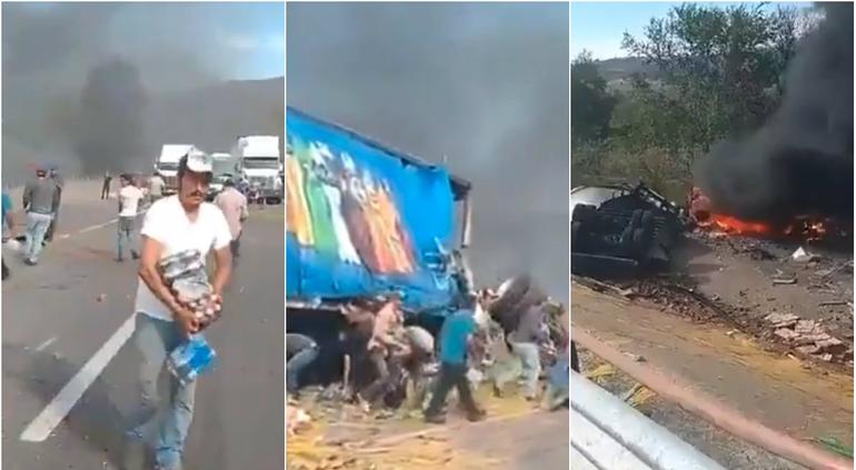 Decenas de hombres, mujeres, niños y hasta adultos mayores, robaban los productos de los tráileres mientras ardía la cabina de uno de ellos con el chofer adentro.