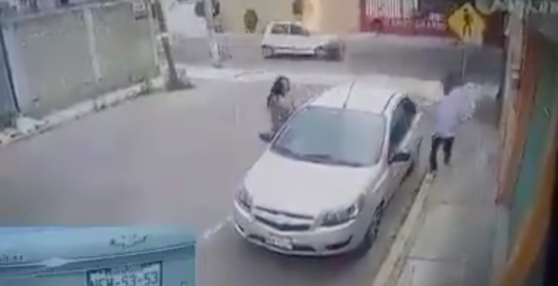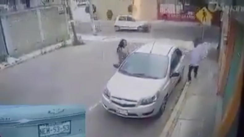 Se capta el momento en que la pareja estaciona su vehículo sobre una calle, para dirigirse hasta un negocio del que se les observa salir con prisa cargando al menos tres bolsas y mochilas.Posteriormente, suben al vehículo Aveo con matrícula del Estado de México y huyen en dirección desconocida.