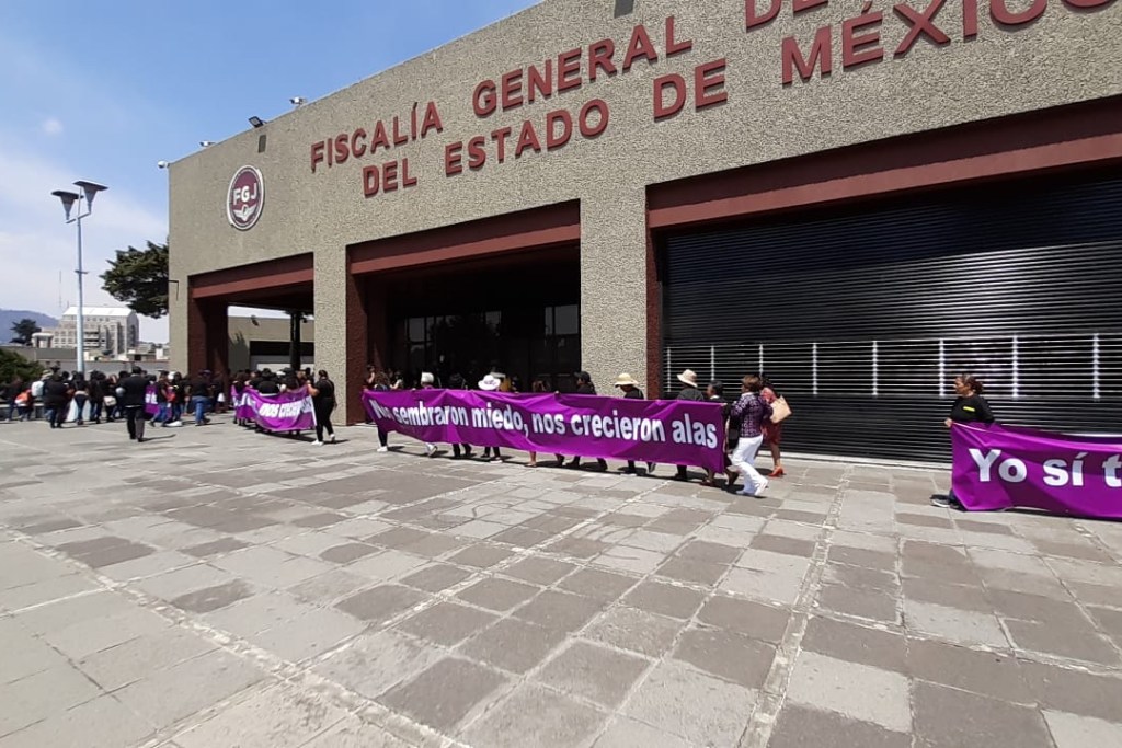 Decenas de mujeres clausuraron, este martes, de manera simbólica los accesos de la Fiscalía General de Justicia del Estado de México, debido a los casos de feminicidio que aún no hay justicia.