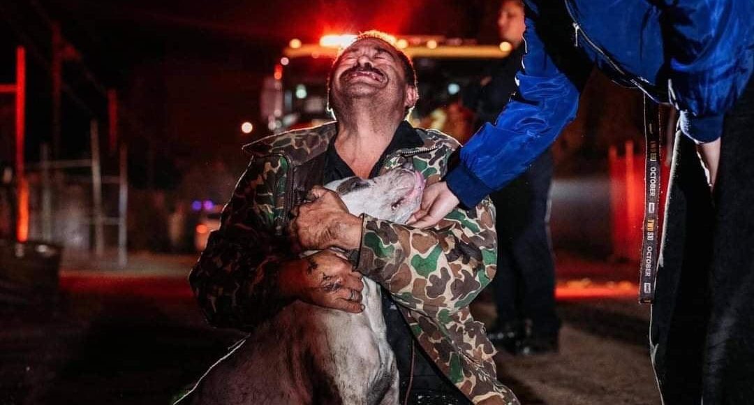 El emotivo abrazo que ambos se dan, fue captado por el fotógrafo mexicalense Jonathan Bobadilla, en la que se puede captar de fondo el trabajo de los bomberos.