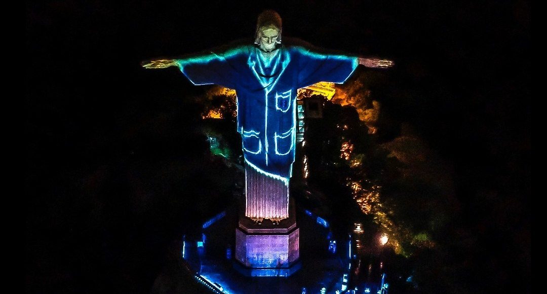 La iglesia católica brasileña rindió este Domingo de Pascua un homenaje al personal que trabaja en los hospitales en plena pandemia de coronavirus y «vistió» de médico al Cristo Redentor que corona el cerro Corcovado en Río de Janeiro.