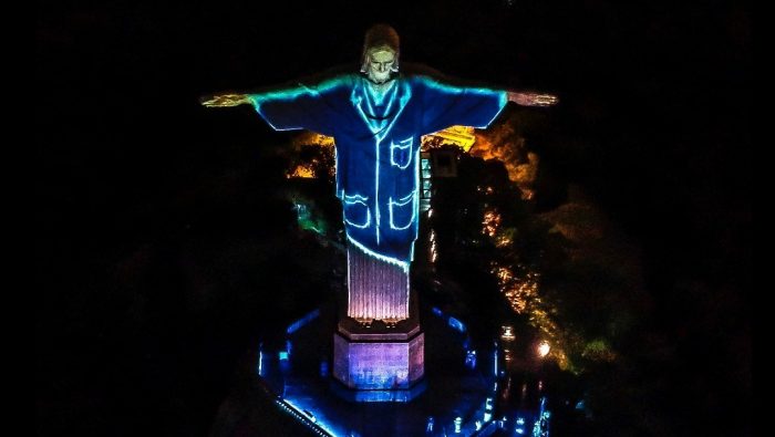 Sobre la estatua que representa a Cristo con los brazos abiertos, de 38 metros de altura y que fue inaugurada en 1931, se proyectaron imágenes con banderas de los países afectados por la pandemia, como China, EEUU, España, Italia y el propio Brasil, y mensajes escritos por niños en los que se leía «Todo va a estar bien».