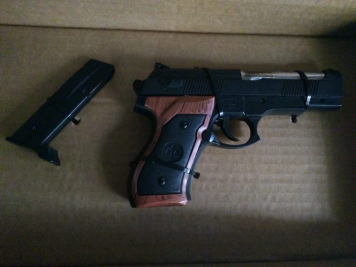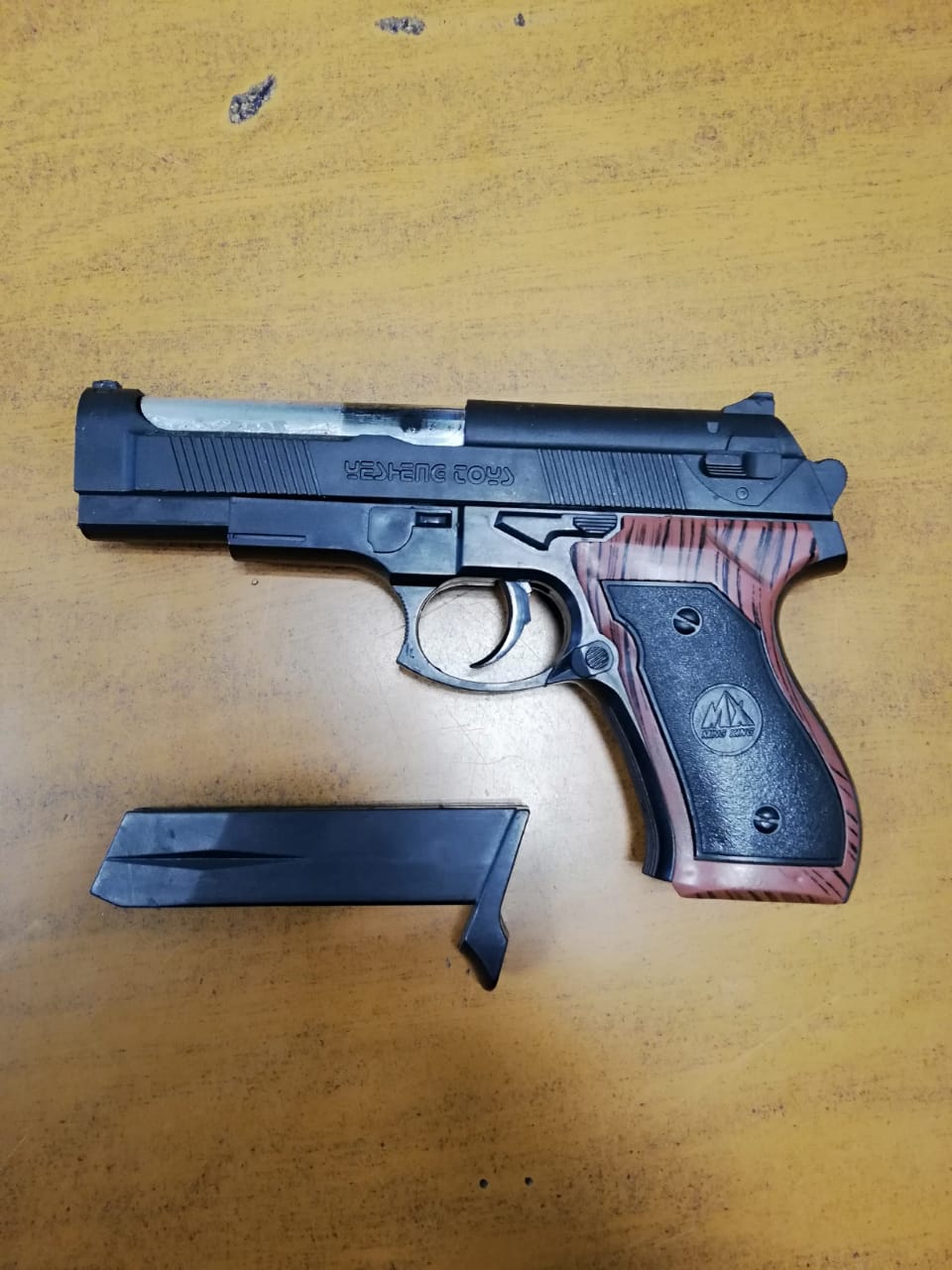 Al realizarle una revisión preventiva a Dónovan Yael «N», se le encontró fajada en la cintura un arma de fuego marca MX MIN XING, con un cargador, en la bolsa del pantalón traía un fajo de billetes que al contarlos eran 10 400 pesos, así como un teléfono celular blanco con negro que la ofendida identificó como de su propiedad.