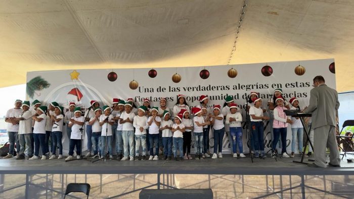 El coro, que lleva un mes de haberse reintegrado tras la pandemia, conformado por niños de 4 a 19 años, interpretaron diversas melodías como “Bésame mucho”, “Las Mil y unas noches”, Vivir al este del Edén, Campana sobre campana y Color de Esperanza.
