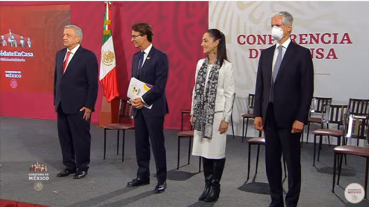 De los 15 funcionarios en la conferencia matutina, solo Del Mazo Maza portaba crubrebocas; desata comentarios en redes sociales