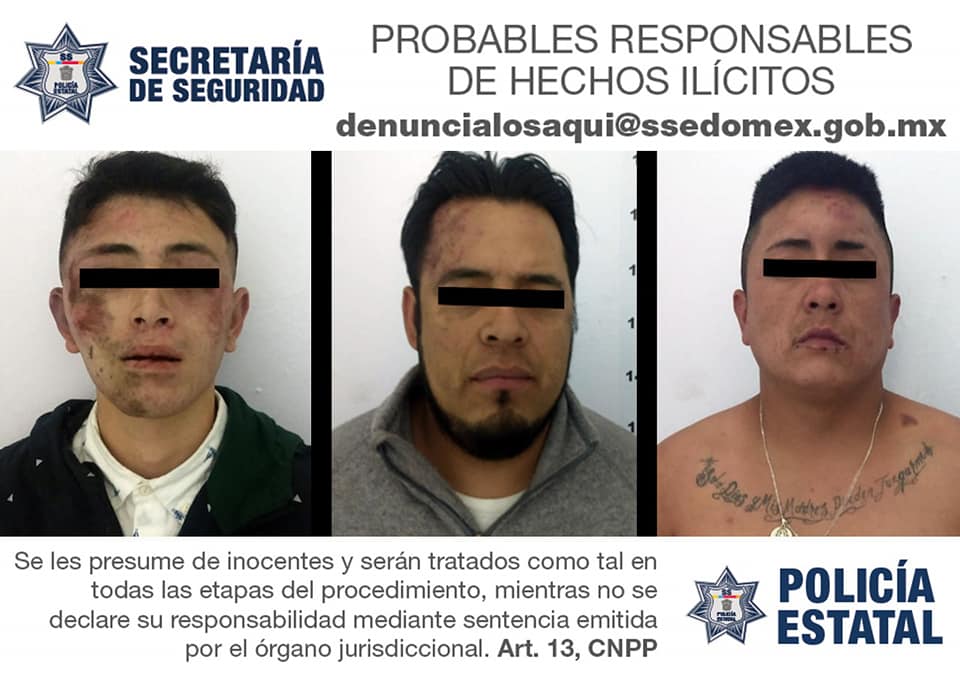 Derivado de la Estrategia Integral de Seguridad, elementos de la Policía Estatal detuvieron a tres personas probablemente relacionadas en robo de vehículo con violencia, mismas que les atacaron con armas de fuego en dos ocasiones, sin que se registraran decesos o lesionados.