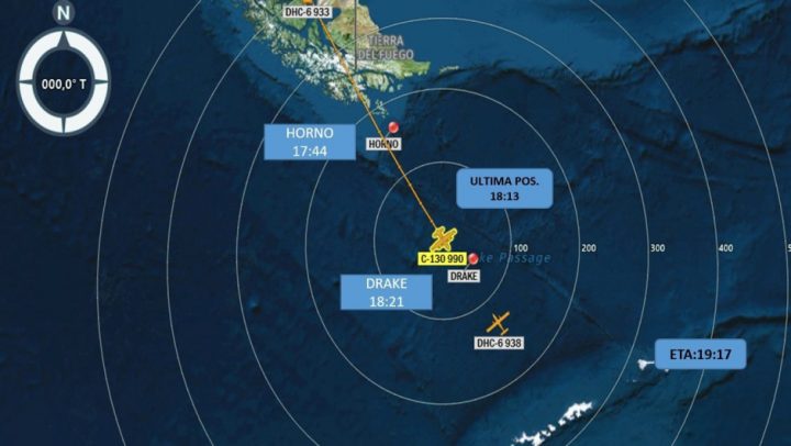 Su última posición conocida fue a aproximadamente 390 millas náuticas desde Punta Arenas y 280 millas náuticas desde la base antártica, según la Fuerza Aérea.