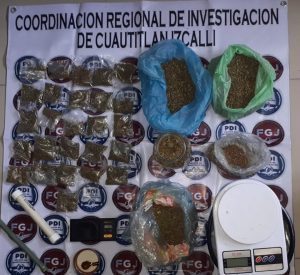 De acuerdo con el Fiscal del Estado de México, Alejandro Jaime Gómez Sánchez, compartió que la detención ocurrió mediante una denuncia presentada elementos de la FGJEM realizaron operativos en la zona en distintos días y horarios. Durante estas acciones fue ubicado el probable narcomenudista, a quien le fue asegurado 1 kilo y medio de marihuana, 26 dosis de marihuana, 2 básculas grameras y 2 tubos de plástico al parecer utilizados para fumar.