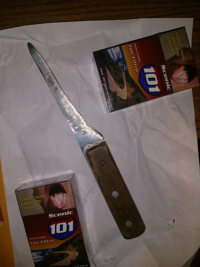 En la revisión le hallaron un arma punzocortante con la que amagó a sus víctimas, quienes lo reconocieron plenamente.