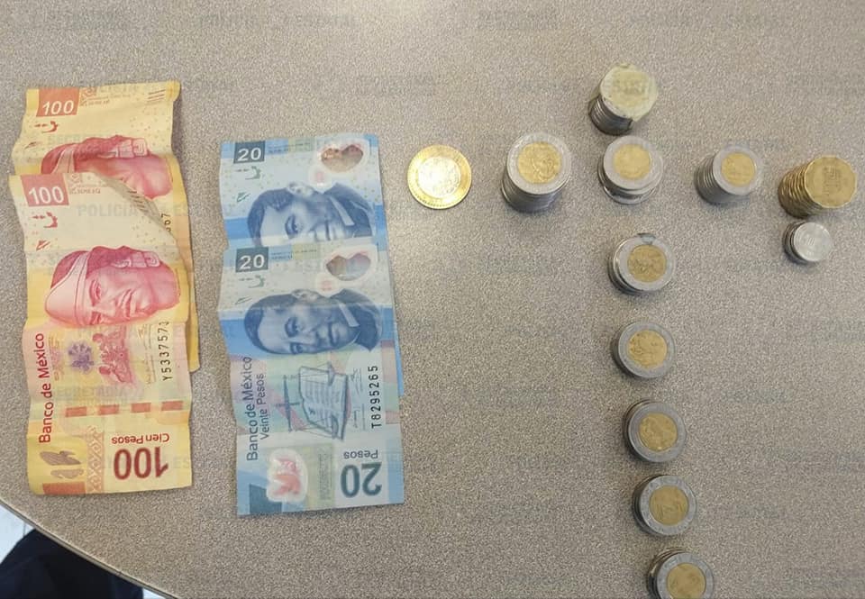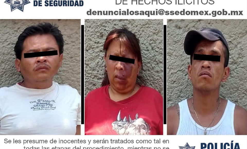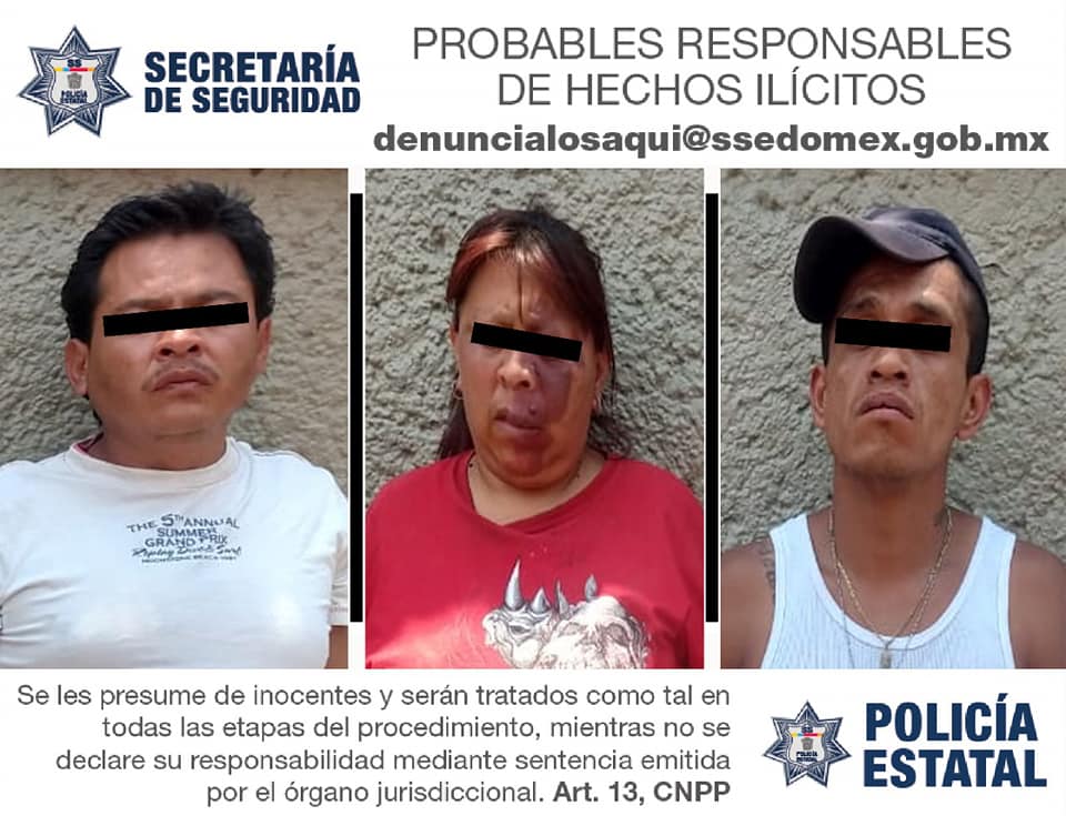 Después de su captura Erick Abraham “N”, de 33 años; Fernando “N”, 45 años; Luz María “N”, de 46 años, y la adolescente de 14 años, fueron sometidos a una revisión protocolaria, que derivó en el hallazgo de ocho botellas de bebida alcohólica, 35 cajetillas de cigarros, dinero en efectivo y un cuchillo.