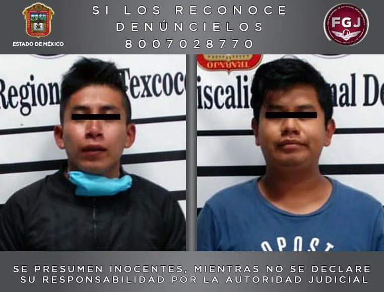 Policías de Investigación (PDI) de la Fiscalía General de Justicia del Estado de México (FGJEM) detuvieron a Marcelino «N» de 29 años de edad y Marcos «N» de 25, quienes son investigados y señalados por su probable participación en el delito de extorsión.