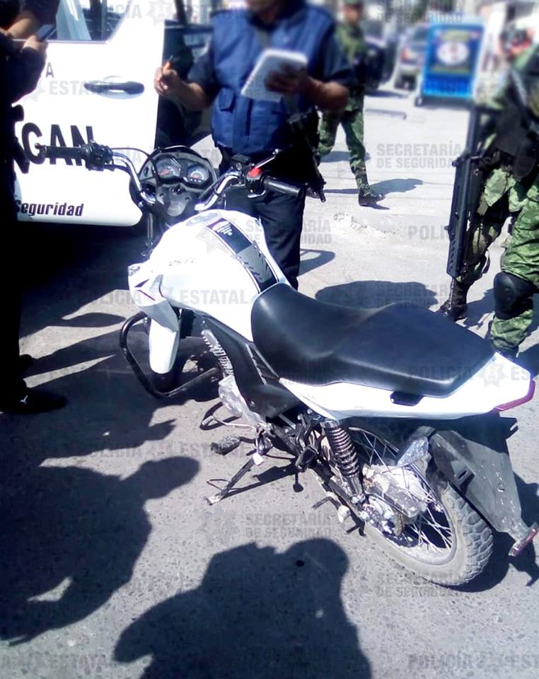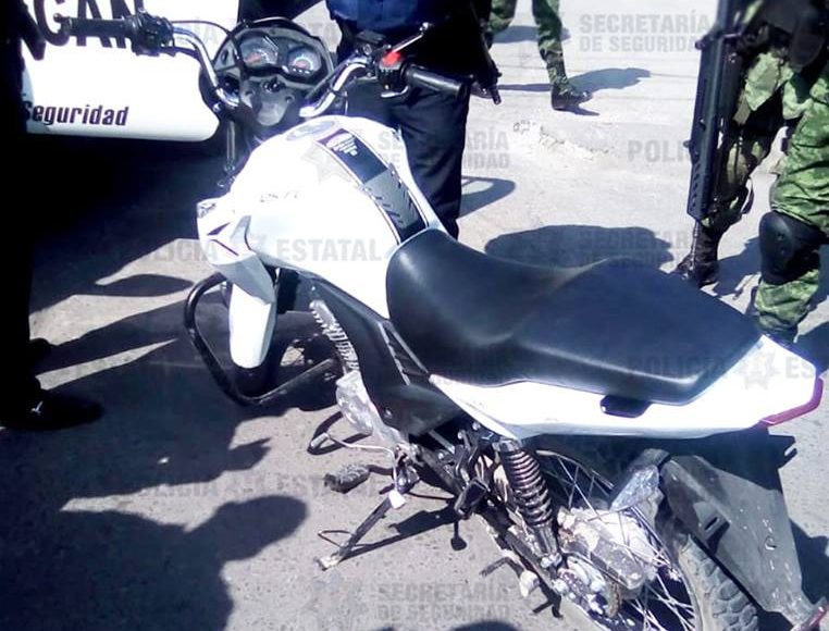 Los efectivos realizaban sus recorridos preventivos, cuando fueron enterados que un par de sujetos robaron una motocicleta Italika 2018, color blanca sin matrícula, que se encontraba estacionada.
