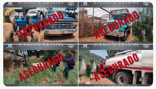 En el sitio también fueron asegurados cuatro vehículos de las marcas Ford y New Holland, los cuales, al igual que 18 cabezas de ganado bovino y 4 cabezas de ganado vacuno, todo ello fue puesto a disposición del agente del Ministerio Público. De igual forma, colocaron sellos de aseguramiento a efecto de continuar con el desarrollo de las indagatorias correspondientes para deslindar responsabilidad.