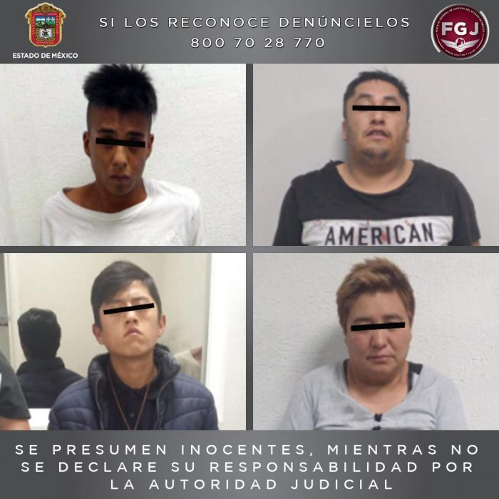 Los detenidos fueron identificados como Hugo «N» de 28 años de edad, Octavio «N» de 22 años, Imanol «N» de 19 y Martha Angélica «N» de 45 años de edad, quienes al parecer son integrantes de una banda dedicada a esta actividad delictiva y la cual es liderada por Miguel Ángel «N», alias «El Monterrey», quien fue detenido en noviembre de 2018 por esta institución y se encuentra preso en un penal estatal.