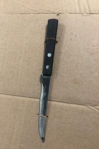 Sin embargo la pronta intervención de los policías derivó en la detención de Jesús «N», quien al realizarle una revisión se le halló un cuchillo de aproximadamente 25 centímetros, además de que la unidad, un auto de la marca Nissan tipo Tsuru fue plenamente reconocida por la víctima.