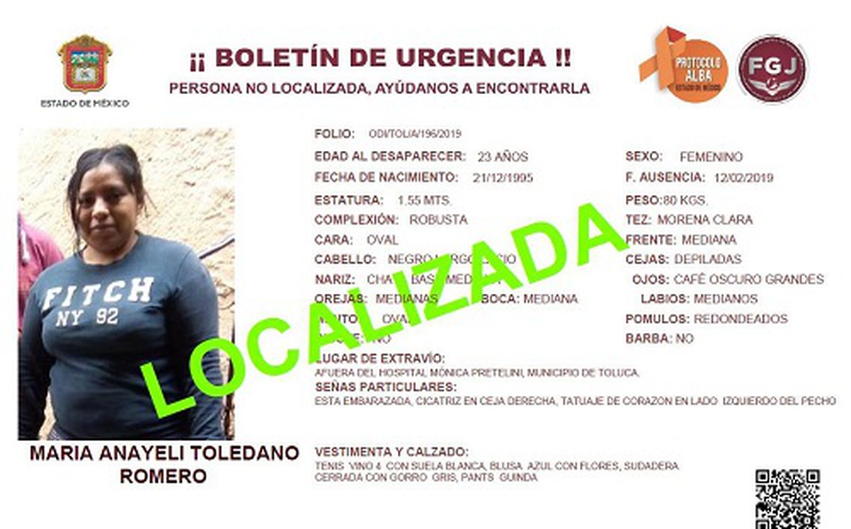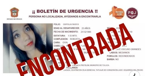 El caso obtuvo difusión en redes, hasta que ayer miércoles 13 de febrero, la Fiscalía General de Justicia del Estado de México informó que la mujer había sido localizada en la terminal de autobuses de Observatorio, en la Ciudad de México.