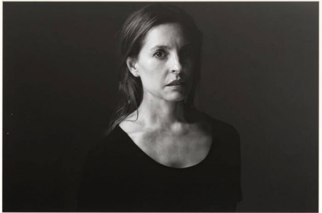 El retrato de Marina de Tavira es enigmático y la muestra enigmática, mirando de frente a la cámara enfundada en un vestido negro.
