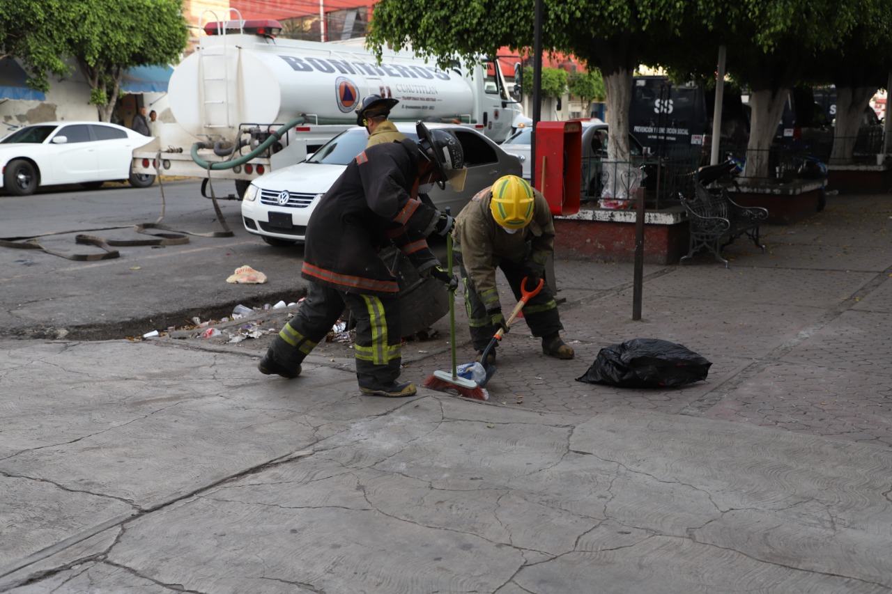 Por instrucciones del alcalde Ariel Juárez Rodríguez, personal de la Coordinación de Protección y civil y bomberos, realizaron limpieza profunda en la zona en donde usualmente se congregan los familiares de las personas privadas de su libertad.