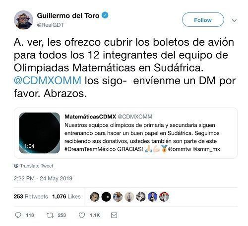 Sin embargo esta publicación llegó a las manos del cineasta mexicano, Guillermo Del Toro y ofreció pagar los boletos de avión de los 12 participantes.