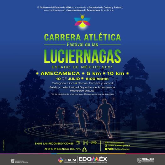 En el marco del Festival de las Luciérnagas Estado México 2021, que organiza la Secretaría de Cultura y Turismo en Amecameca, la Dirección General de Cultura Física y Deporte llevará a cabo una carrera atlética el próximo 10 de julio en las distancias de 5 y 10 kilómetros.