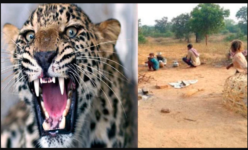 La noche del pasado lunes, un leopardo tomó por sorpresa a dos menores de edad que jugaban frente a una vivienda en la aldea de Prempuri, India.