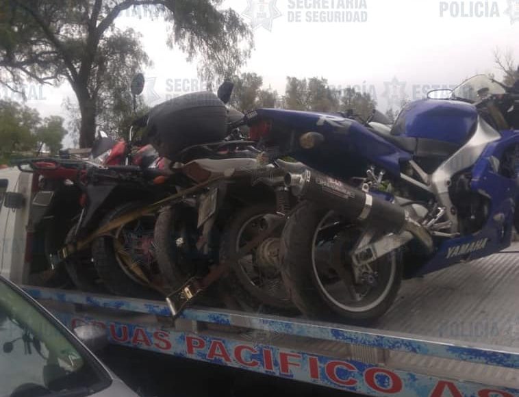 Un llamado de auxilio al número de emergencia, permitió que elementos de la Secretaría de Seguridad (SS), realizaran el hallazgo de un predio en el que se resguardaban varias motocicletas con reporte de robo.