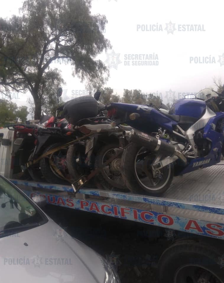 Dentro del inmueble se aseguró la motocicleta robada con alteraciones en el motor y dos más de la misma marca bajo el mismo estatus legal, así como dos motocicletas marca Yamaha, una de ellas sin reporte de robo.