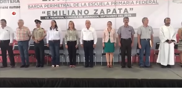 Durante la ceremonia de entrega de una barda perimetral en la Escuela Primaria Federal ?Emiliano Zapata’, en el municipio de Frontera, Choahuila, el profesor encargado de guiar el Juramento a la bandera se confundió y terminó recitando el Padre uestro.