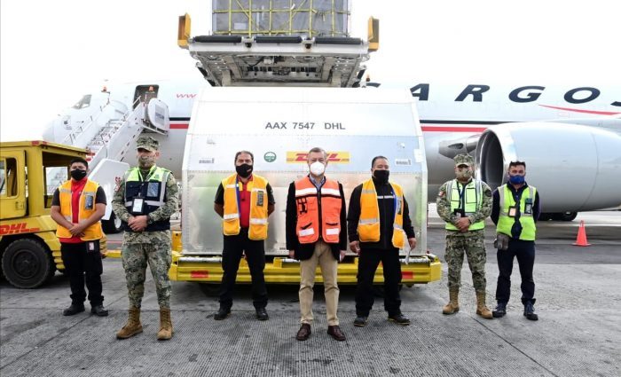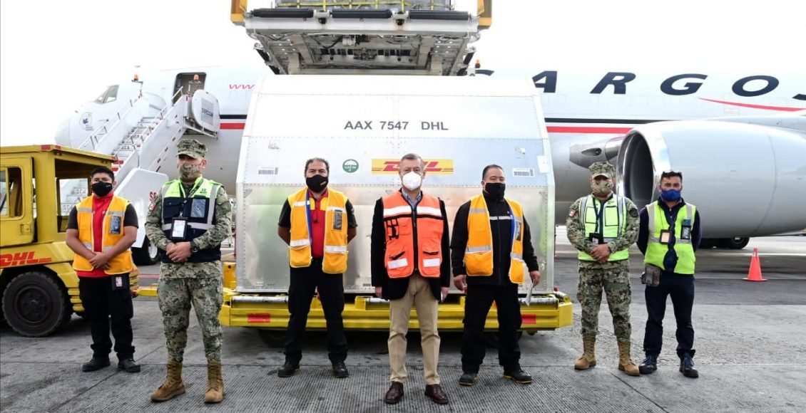 México recibió 296 mil 010 vacunas envasadas contra COVID-19 de Pfizer-BioNTech, en el embarque número 52 de esta farmacéutica que arribó a las 9:11 h, a la terminal 1 del Aeropuerto Internacional de la Ciudad de México (AICM) “Benito Juárez”, en el vuelo CVG MEX 952, procedente de Cincinnati, Estados Unidos.